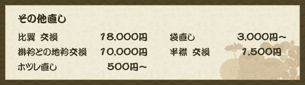 「柄足し」とは「裄直し」や「頑固なシミ」「シミにより生地が弱ってる場合」などに用います。